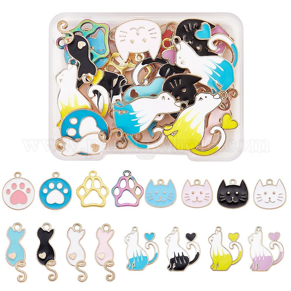 32 шт 16 стиль подвески из сплава эмали, отпечатки медвежьих лап, кошка и плоский круг с дьявольским когтем