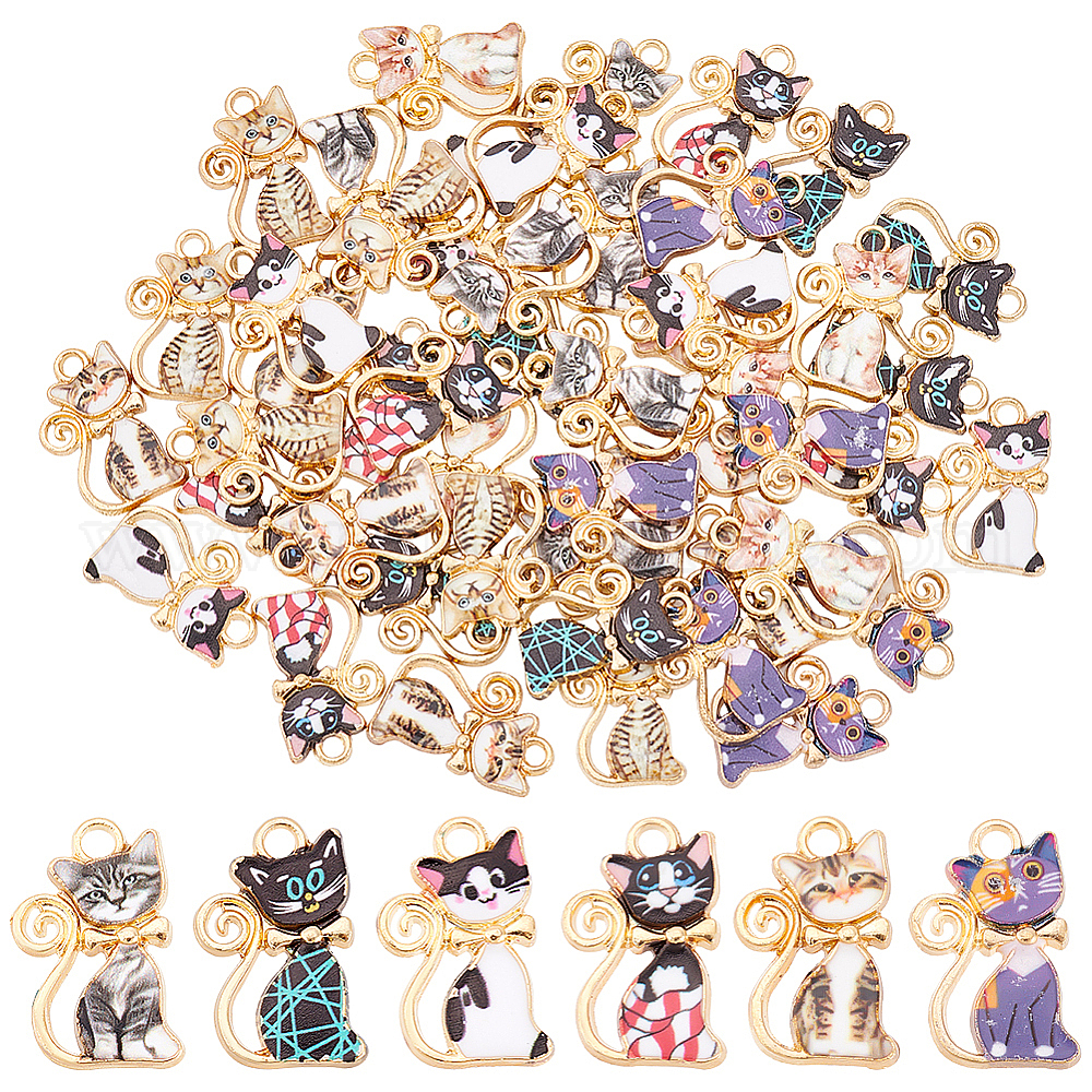 48 шт 8 стиль подвески из сплава эмали, золотой свет, кошка