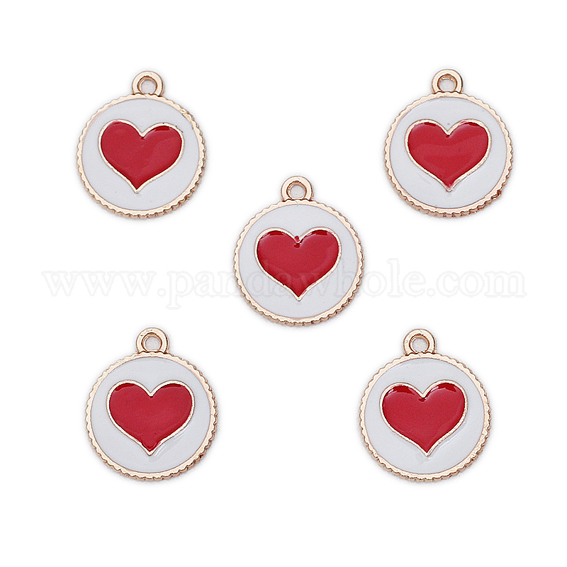 Подвески из эмали и сплава, золотые, плоско-круглые с сердцем