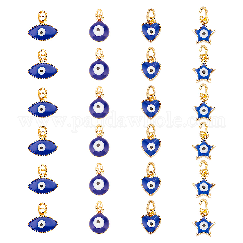 24 шт. 4 подвески из латуни с покрытием из эмали, с прыжковых колец, без кадмия и без свинца, реальный 18 k позолоченный, звезда и сердце с дурным глазом