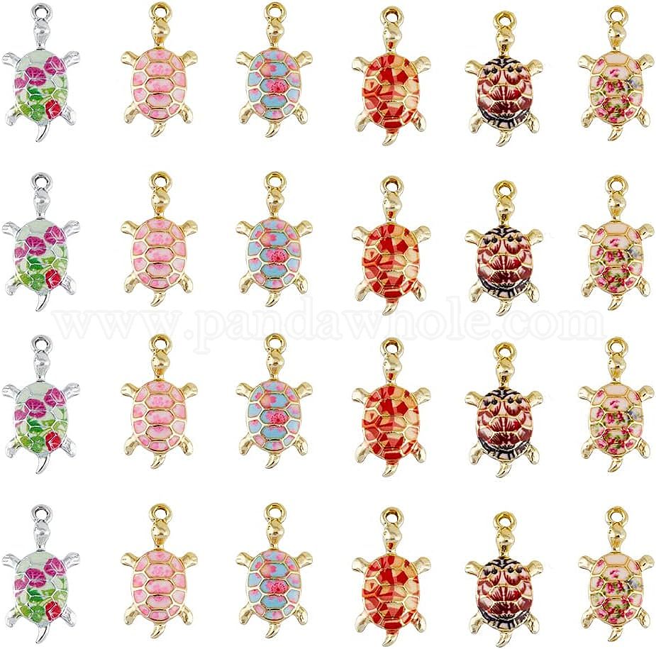 24 шт 6 цвета сплава эмалевые подвески, золотой свет, черепаха