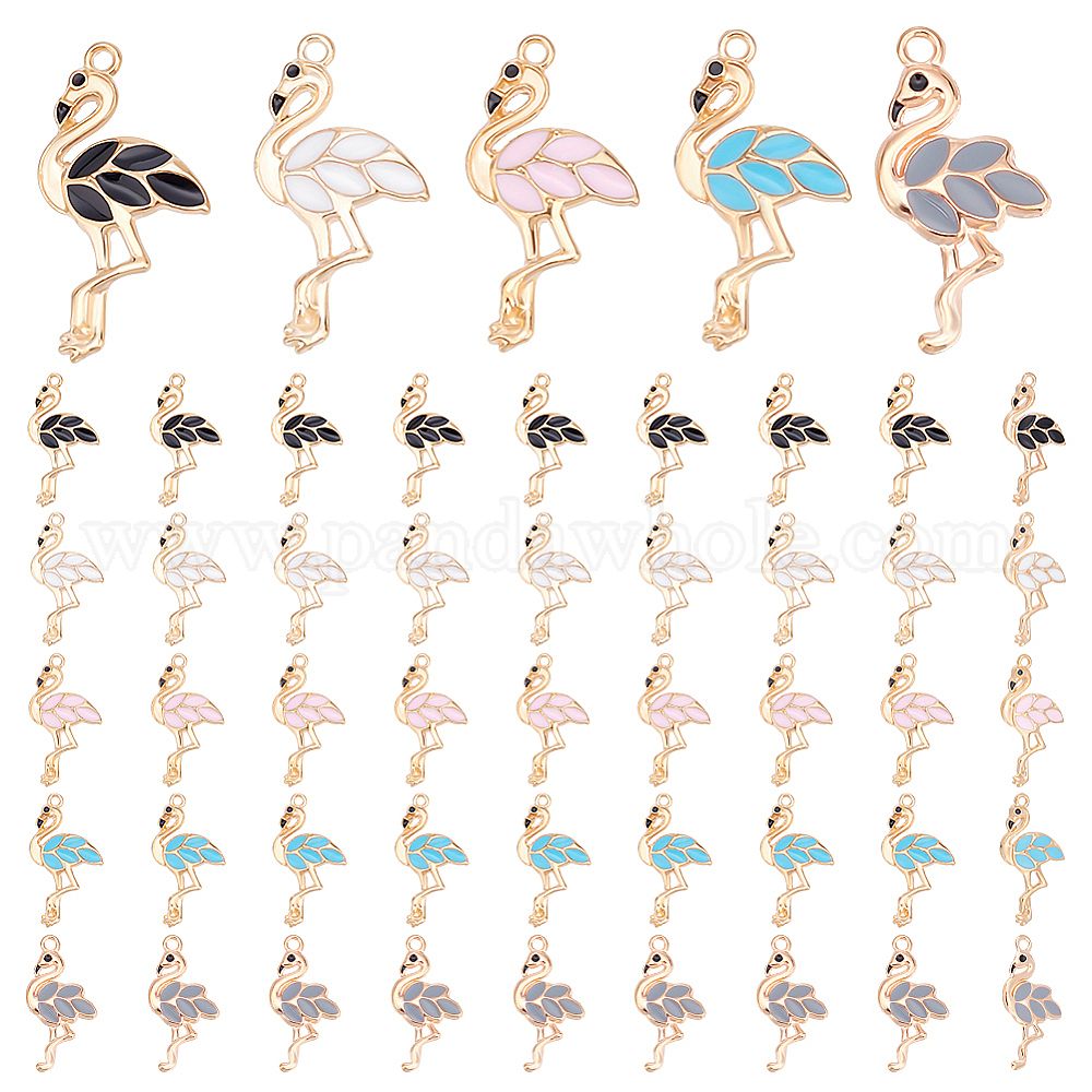 50 шт 5 стиль подвески из сплава эмали, без кадмия и без свинца, золотой свет, форма фламинго