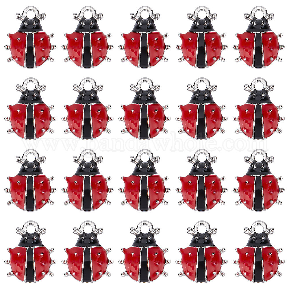 30 шт. эмалевые подвески в виде божьей коровки из платинового сплава