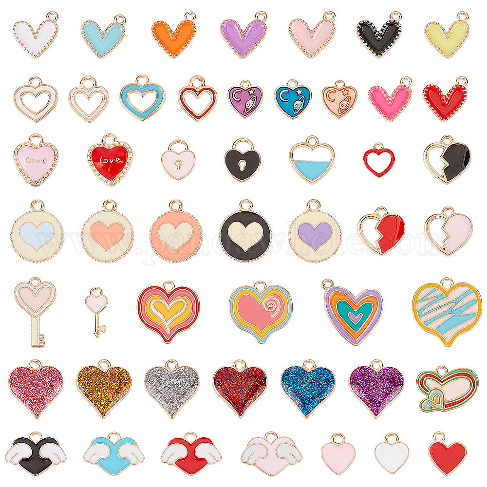 2 наборы подвесок из сплава и эмали на тему Дня святого Валентина, золотые, сердце