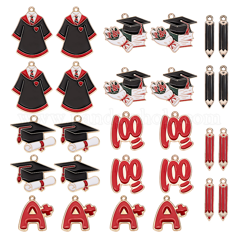 28 шт 7 стиль выпускной тема сплав эмаль подвески, ручка и буква а и докторская шляпа, золотой свет