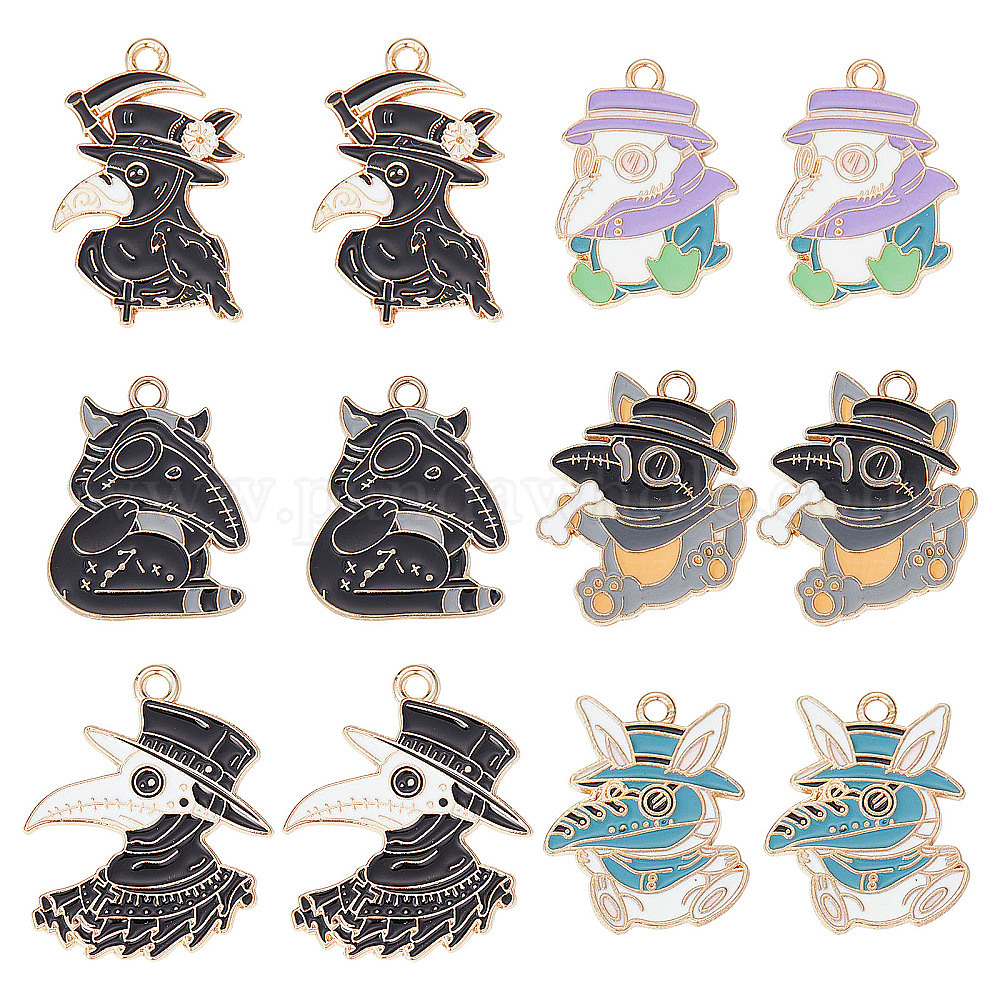24 шт 6 стиль подвески из сплава эмали, готическая тема, кролик и кошка и пингвин (02F8WA)