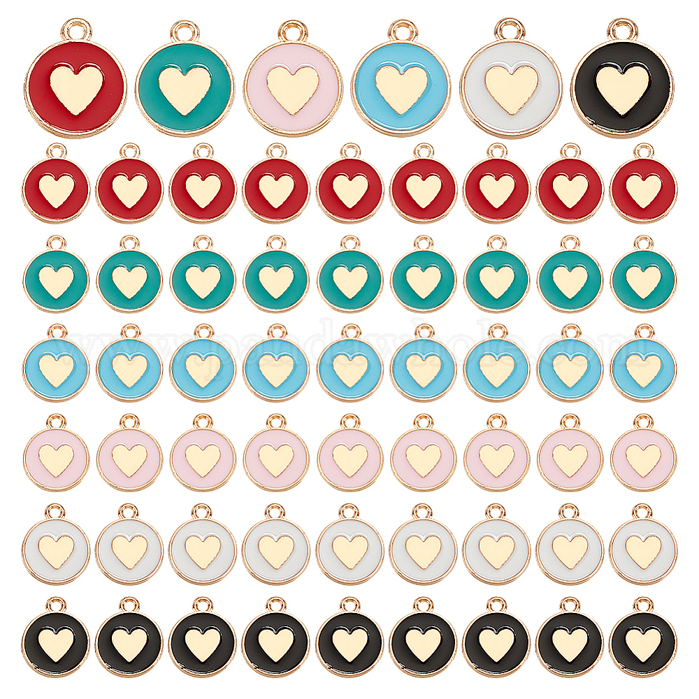 120 шт 6 цвета сплава эмалевые подвески, плоско-круглые с сердцем, золотой свет