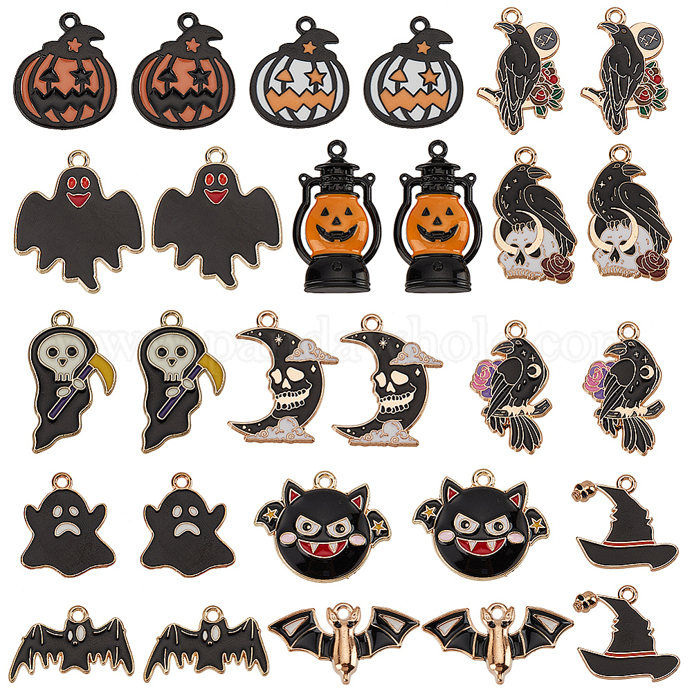 28 шт 14 стиль подвески из сплава эмали, луна с черепом и шляпой ведьмы с черепом и тыквой