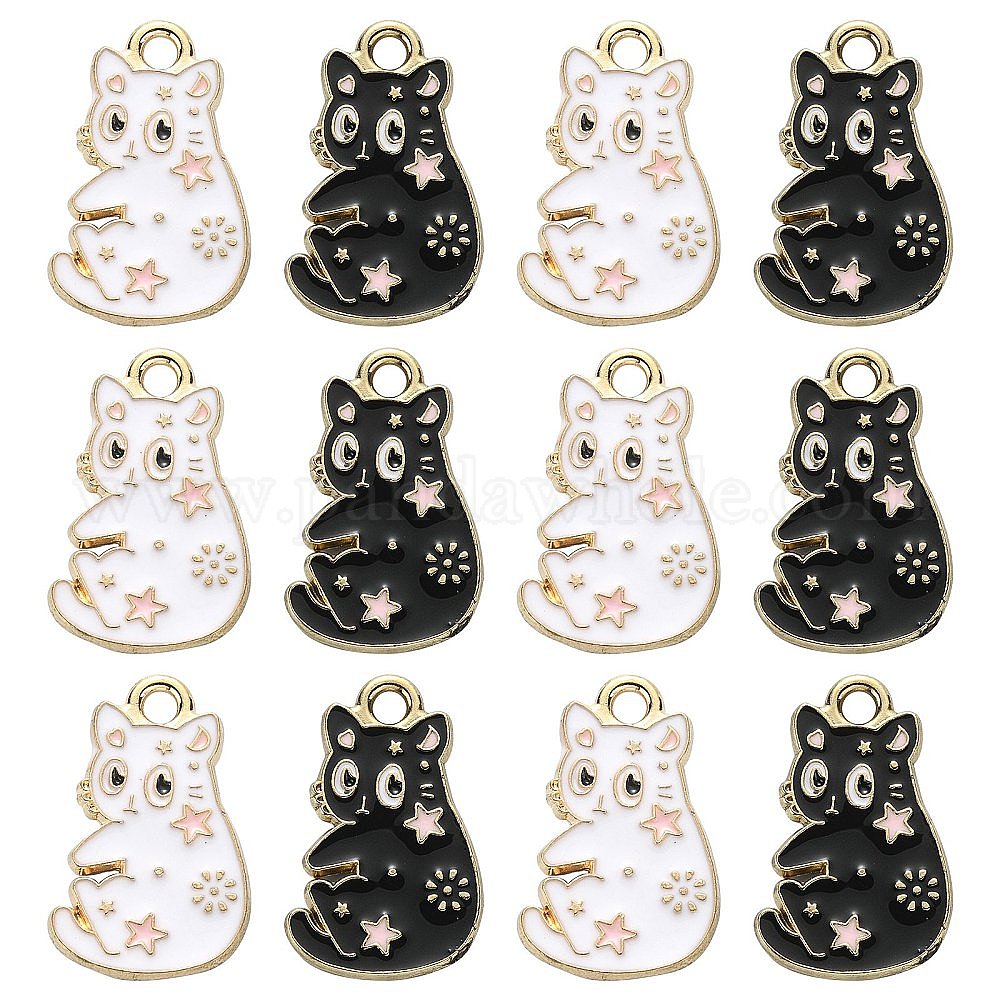 20 шт 2 стили подвески из сплава эмали, кошка прелести, золотой свет