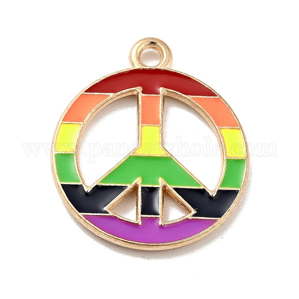 Подвески из сплава радужной эмали, плоский круглый с подвесками в виде знака мира, золотой свет