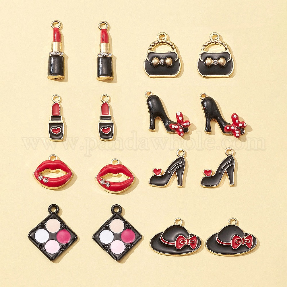 16 шт 8 стиль стойки покрытие сплава эмалевые подвески, с кристально горный хрусталь, без кадмия, без никеля и без свинца, помада, сумка и высокие каблуки с красным бантом