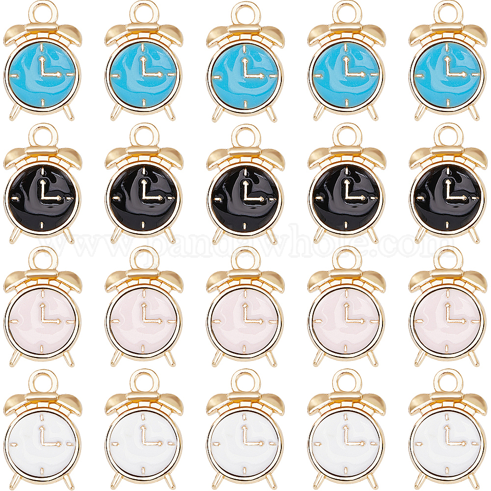 40 шт 4 цвета сплава эмалевые подвески, часы, золотые