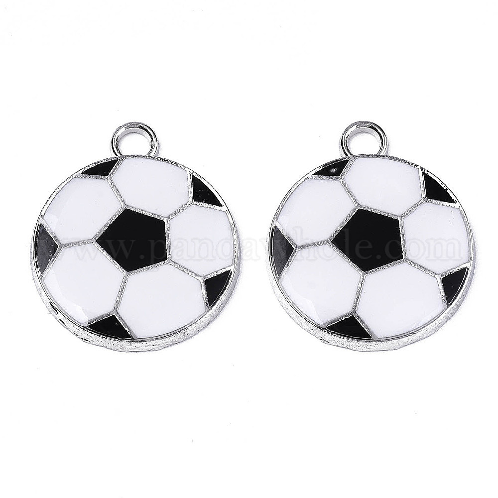 30шт. полые подвески из экологически чистого сплава с эмалью, плоские круглые с рисунком футбольного, платина