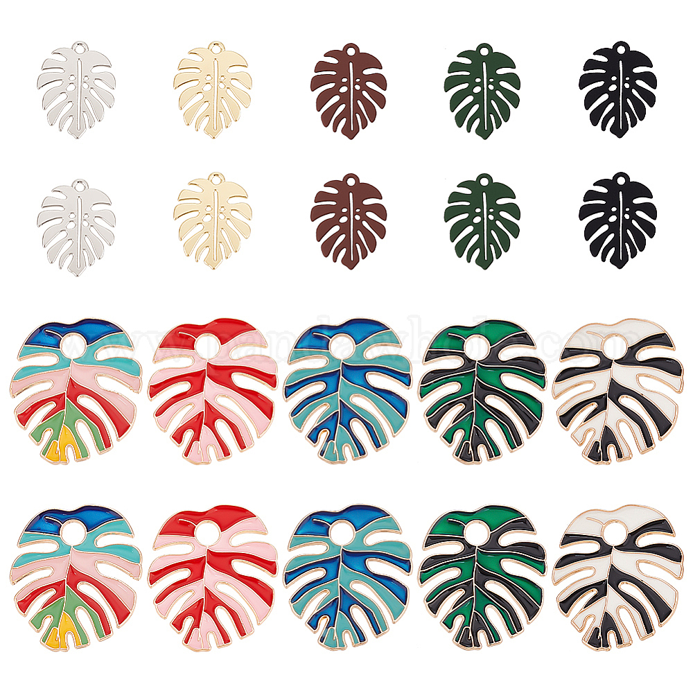 лист монстера: 21x17x1 мм, отверстие : 1.6 мм, 5 цветов, 2 шт / цвет, 10 шт;