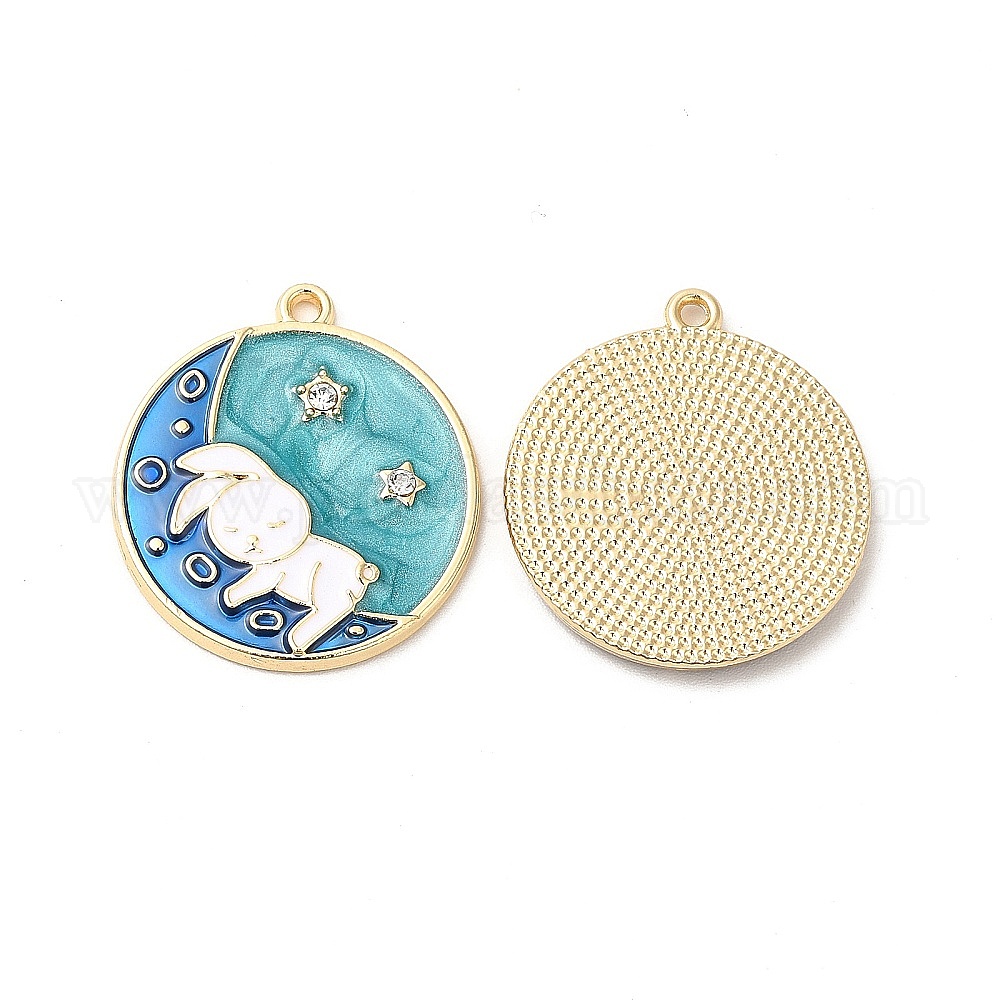 Подвески из эмали и сплава, со стразами, без кадмия, без никеля и без свинца, плоский круг с рисунком кролика
