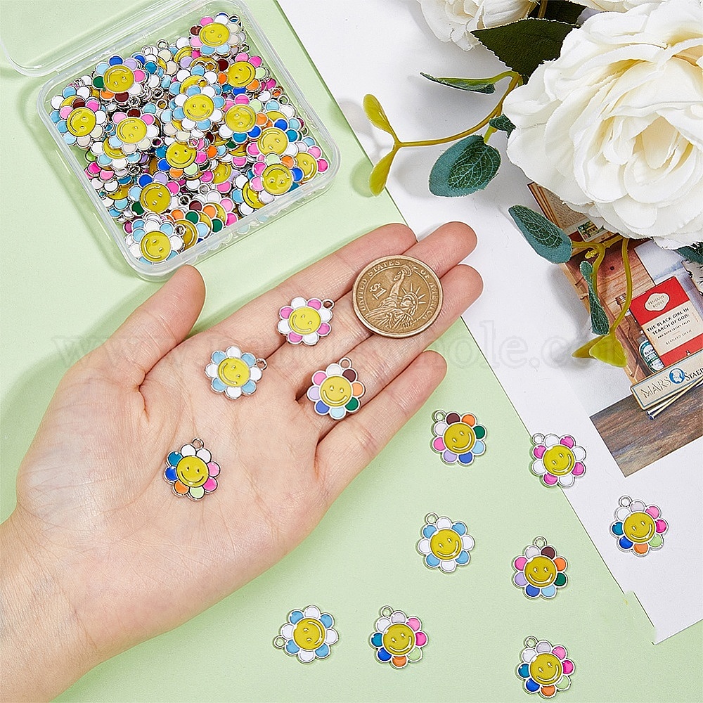 80 шт 4 цвета сплава эмаль подвески, цветок с улыбающимся лицом