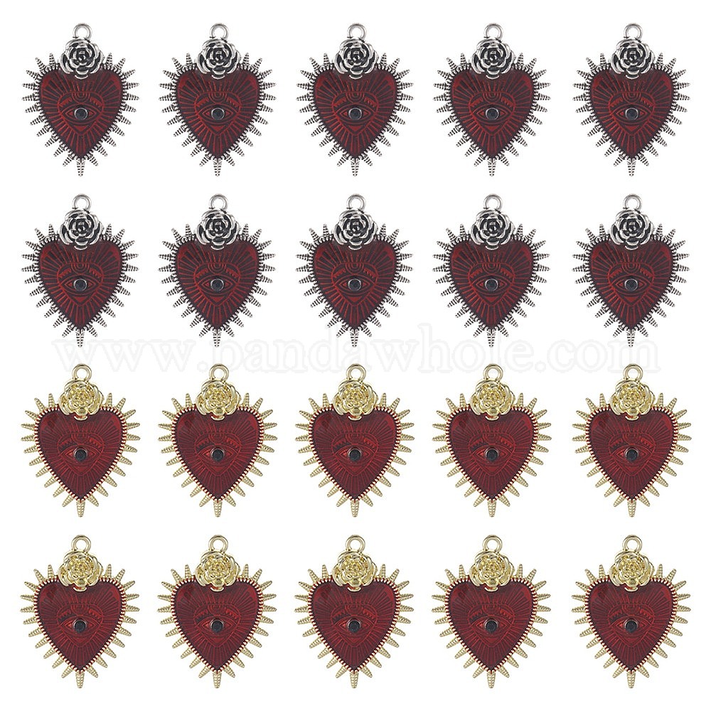 20 шт 2 цвета сплава эмалевые подвески, Сердце с розой