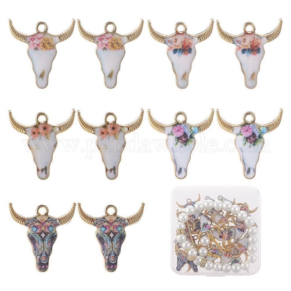 30 шт 5 цвета сплава эмалевые подвески, золотые, поголовье крупного рогатого скота