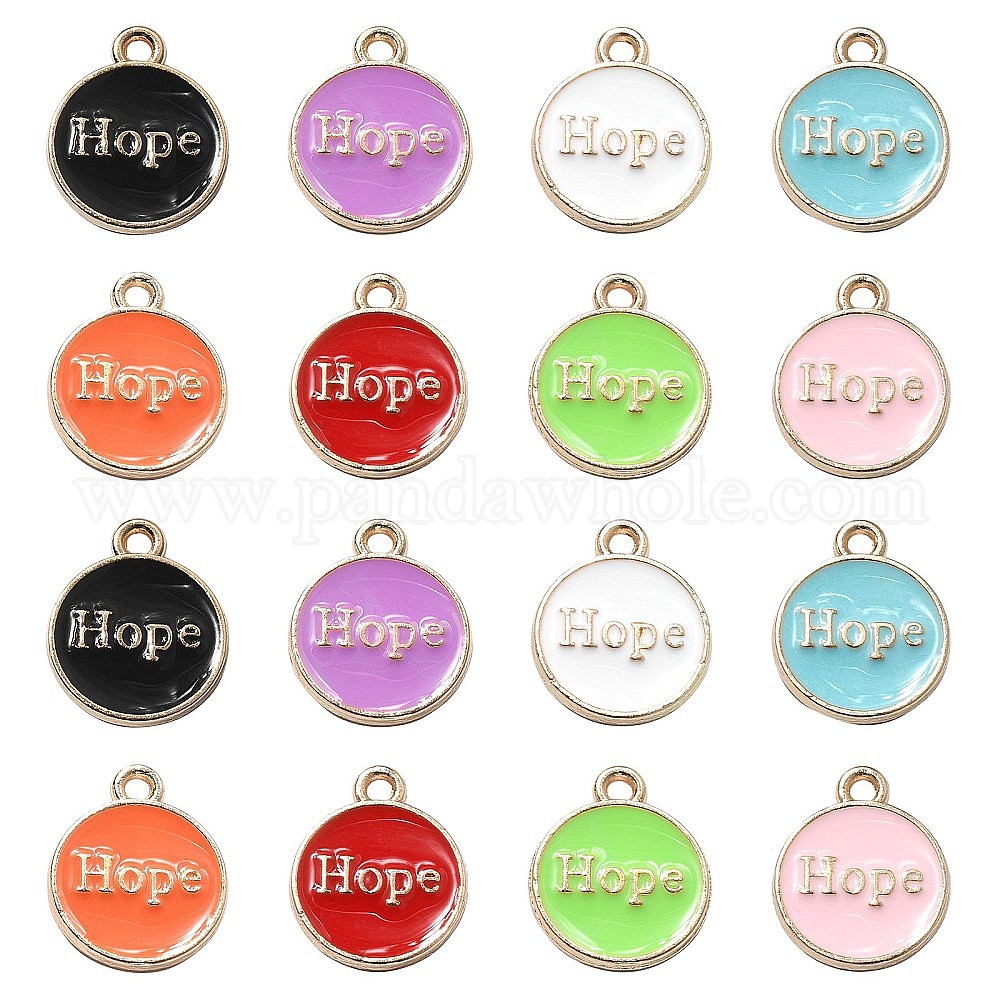 40 шт 8 цвета сплава эмалевые подвески, золотой свет, плоские круглые со словом надежды