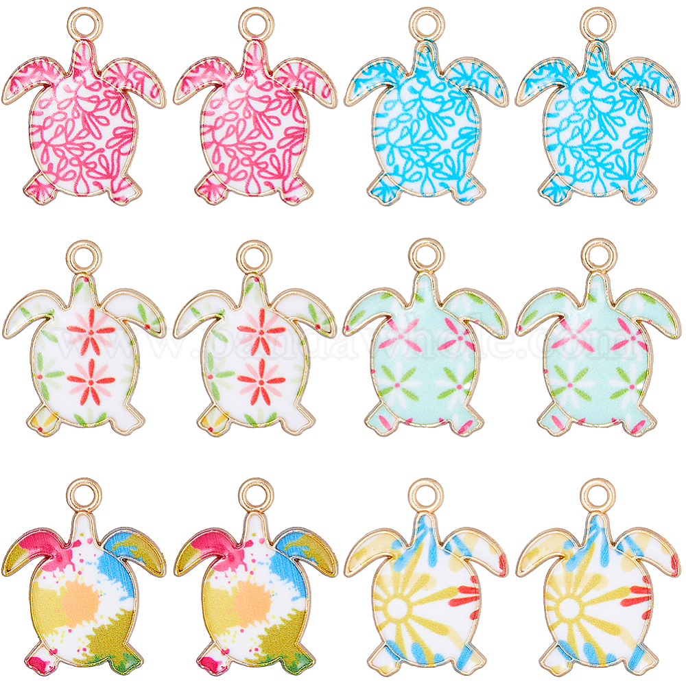 • (52) Непрозрачная лаванда 36 шт 6 стиль подвески из сплава эмали, золотой свет, черепаховый шарм, разноцветные, 21.5x18x1.5 мм, отверстие : 1.8 мм, 6 шт / стиль