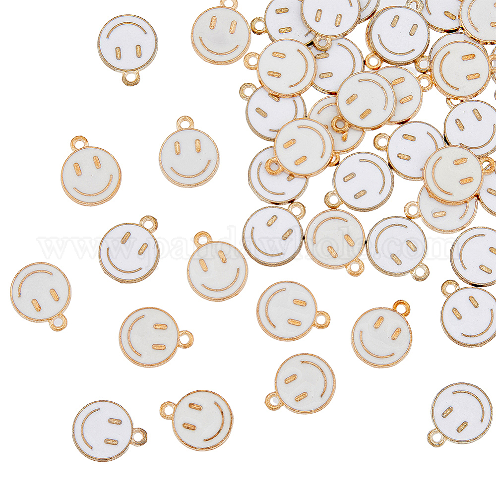 120Шармы из сплава эмали, без кадмия и без свинца, плоские круглые с улыбающееся лицо, золотой свет