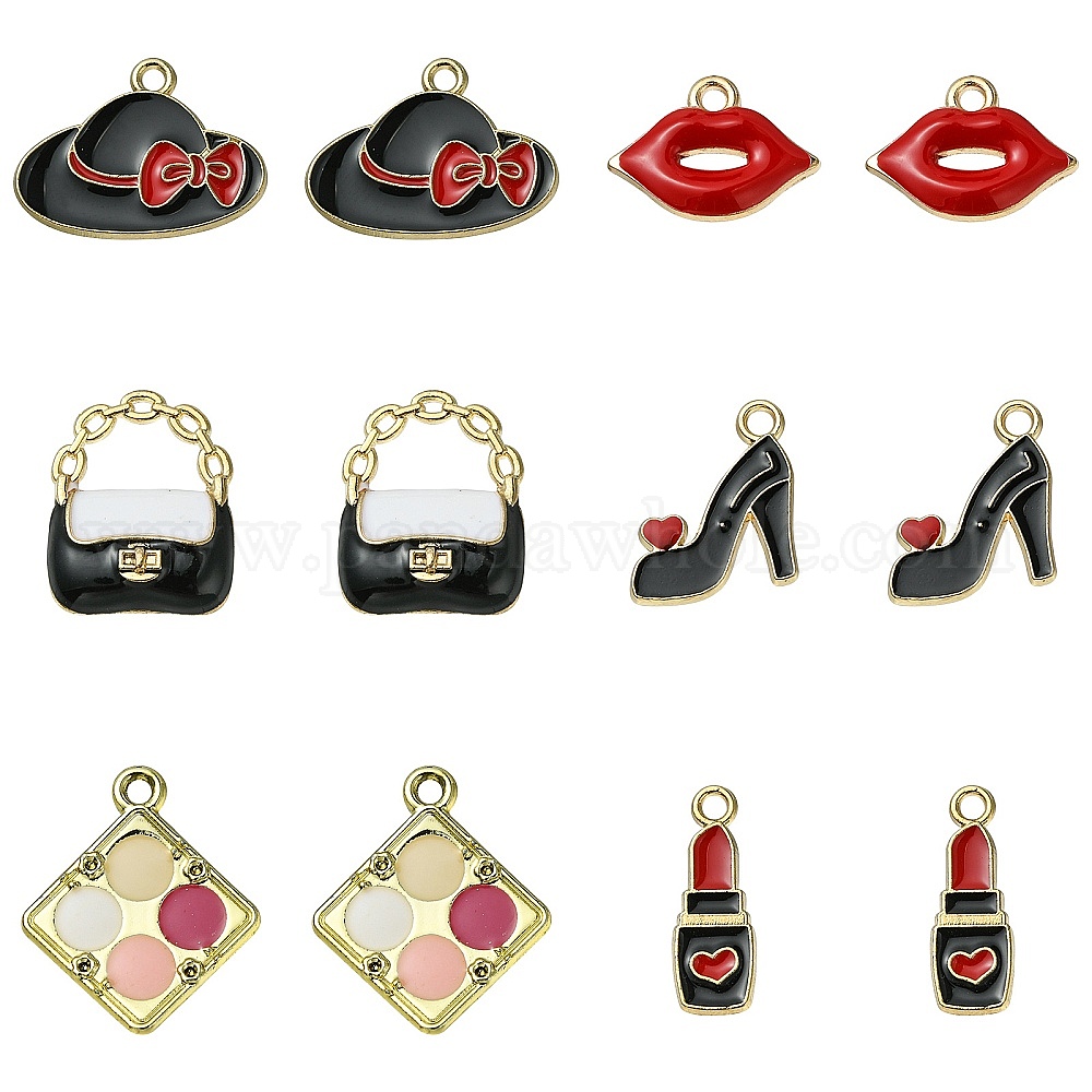 30шт 6 стили подвески из эмалированного сплава с покрытием, без кадмия, без никеля и без свинца, пляжная шляпа/на высоком каблуке/губа/палитра теней для век/помада