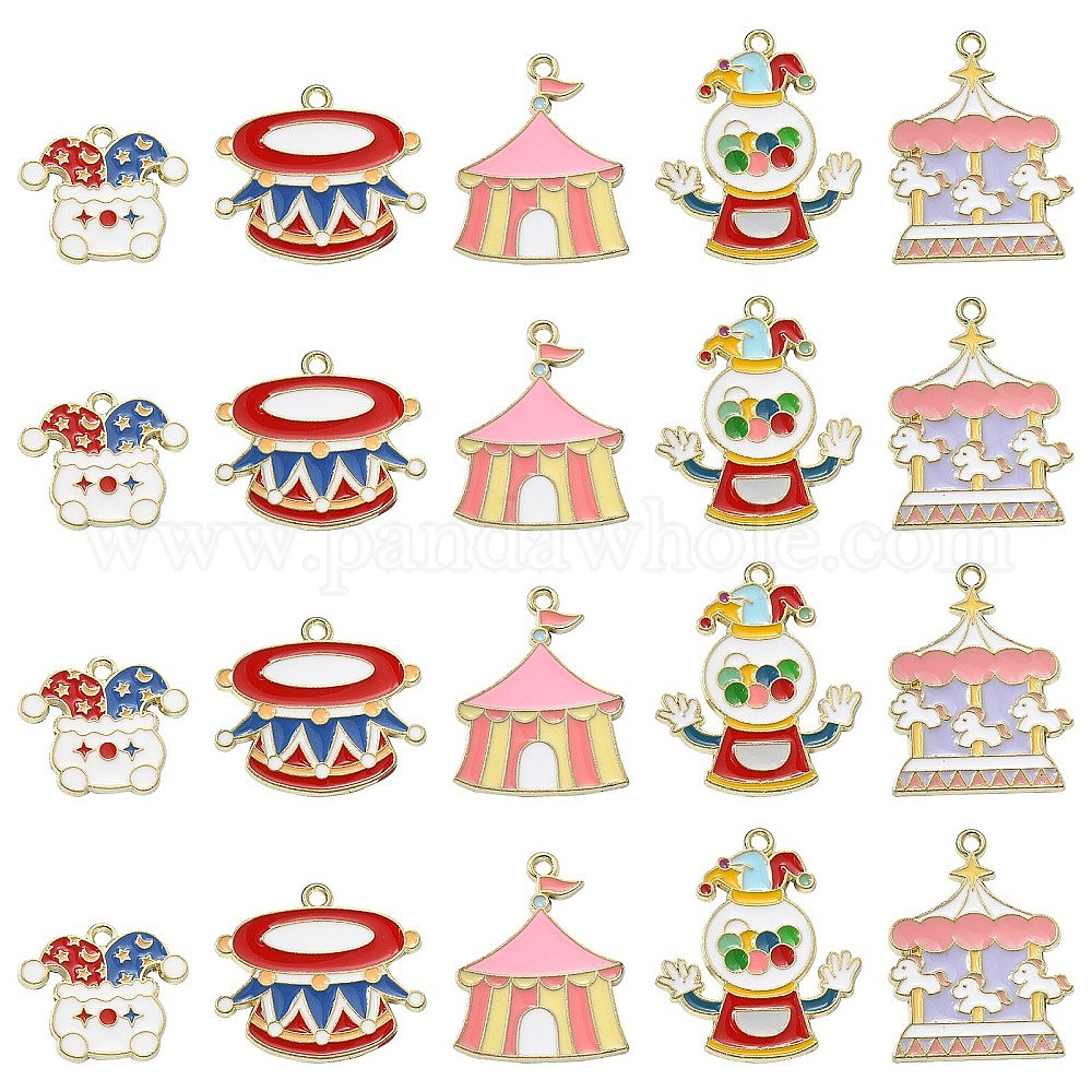 30шт 5 стили подвески из эмалированного сплава с цирковой тематикой, золотой свет, клоун/цирковой барабан/карусель/палатка