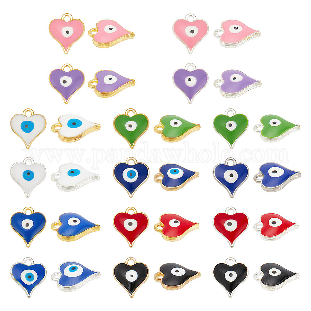 64 шт 16 цвета сплава эмаль подвески, сердце с оберегом от сглаза