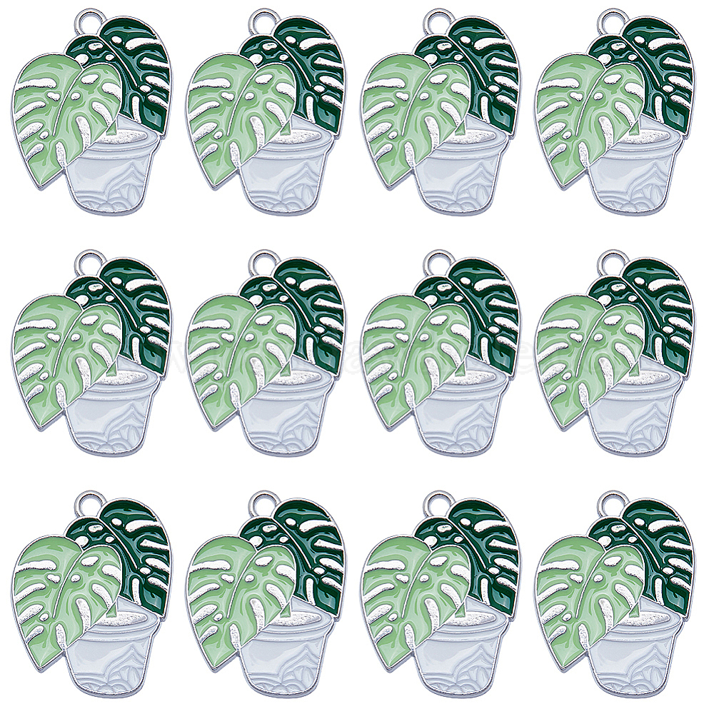 20 шт. Подвески из сплава эмали, платина, шарм в горшке из листьев