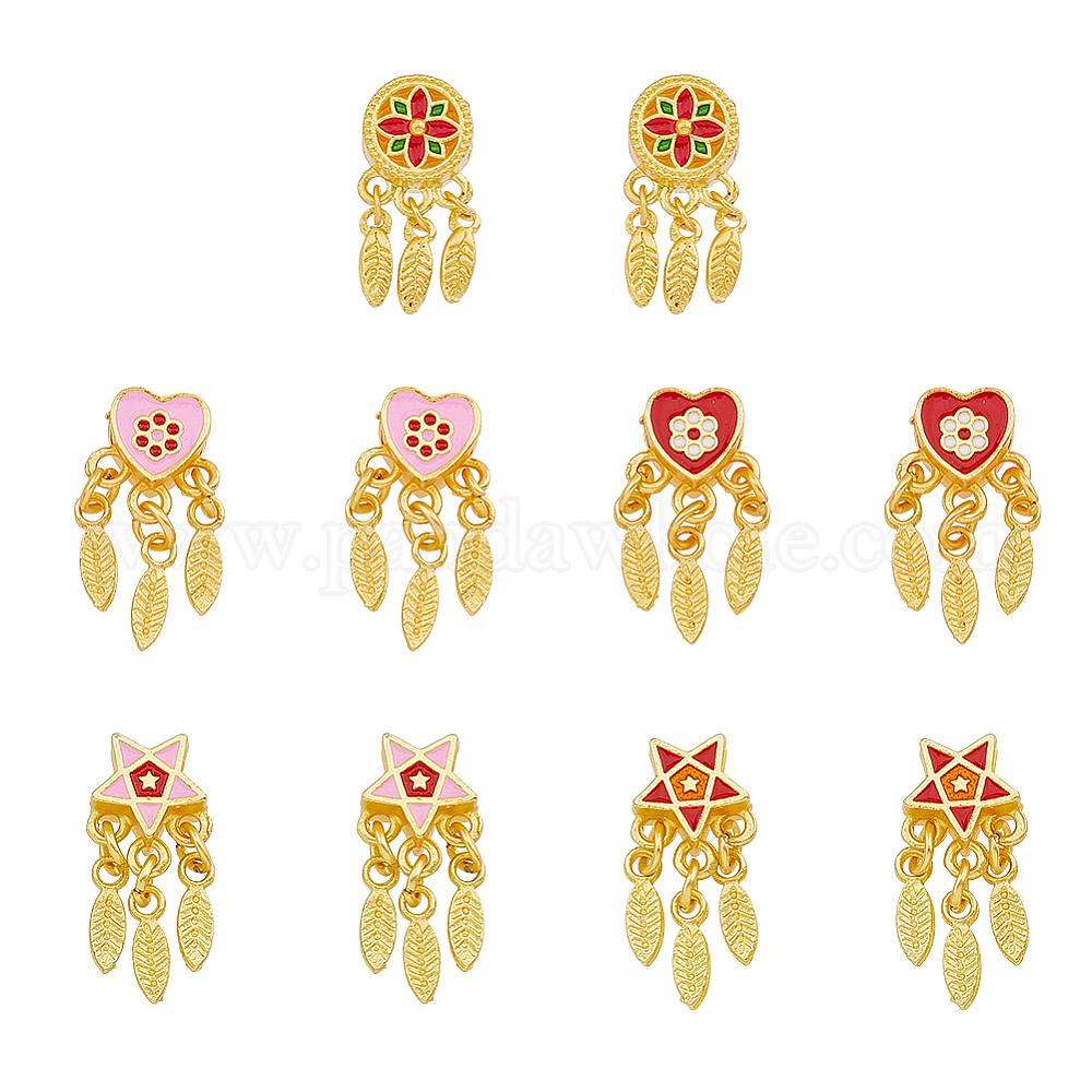10 шт 5 стили подвески из сплава, с эмалью, сердце и звезда и плоский круг и перо, матовый золотой цвет