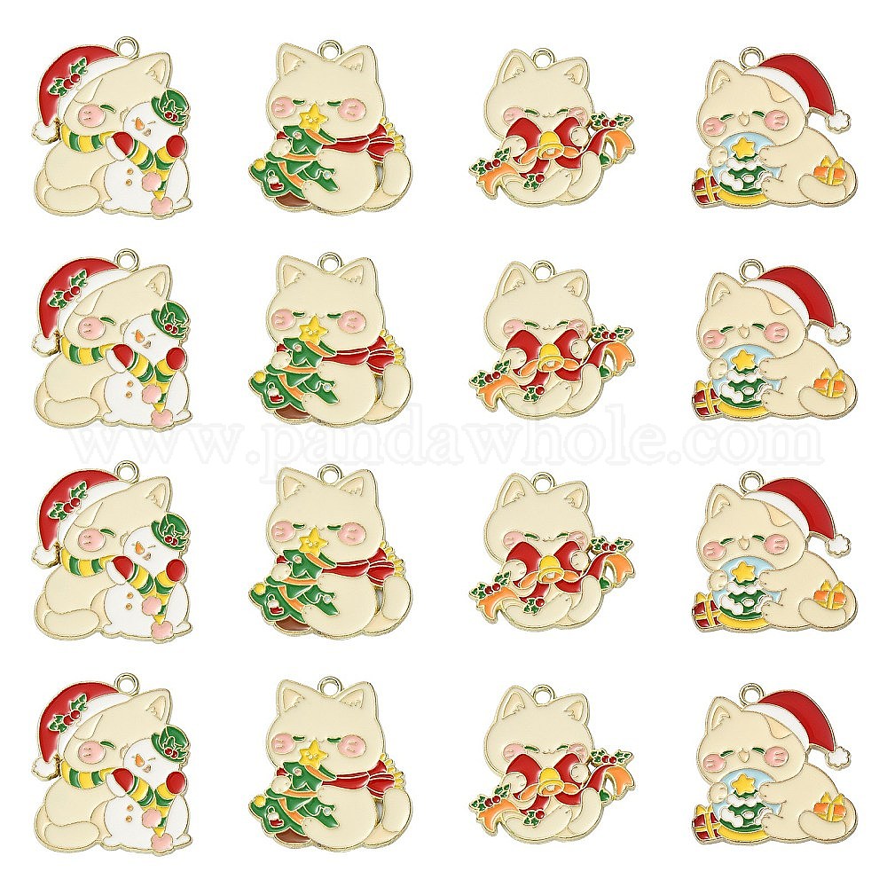 20 шт 4 стили подвески из сплава эмали, Новогодняя тема, кошачье очарование, золотой свет (02HWYR)