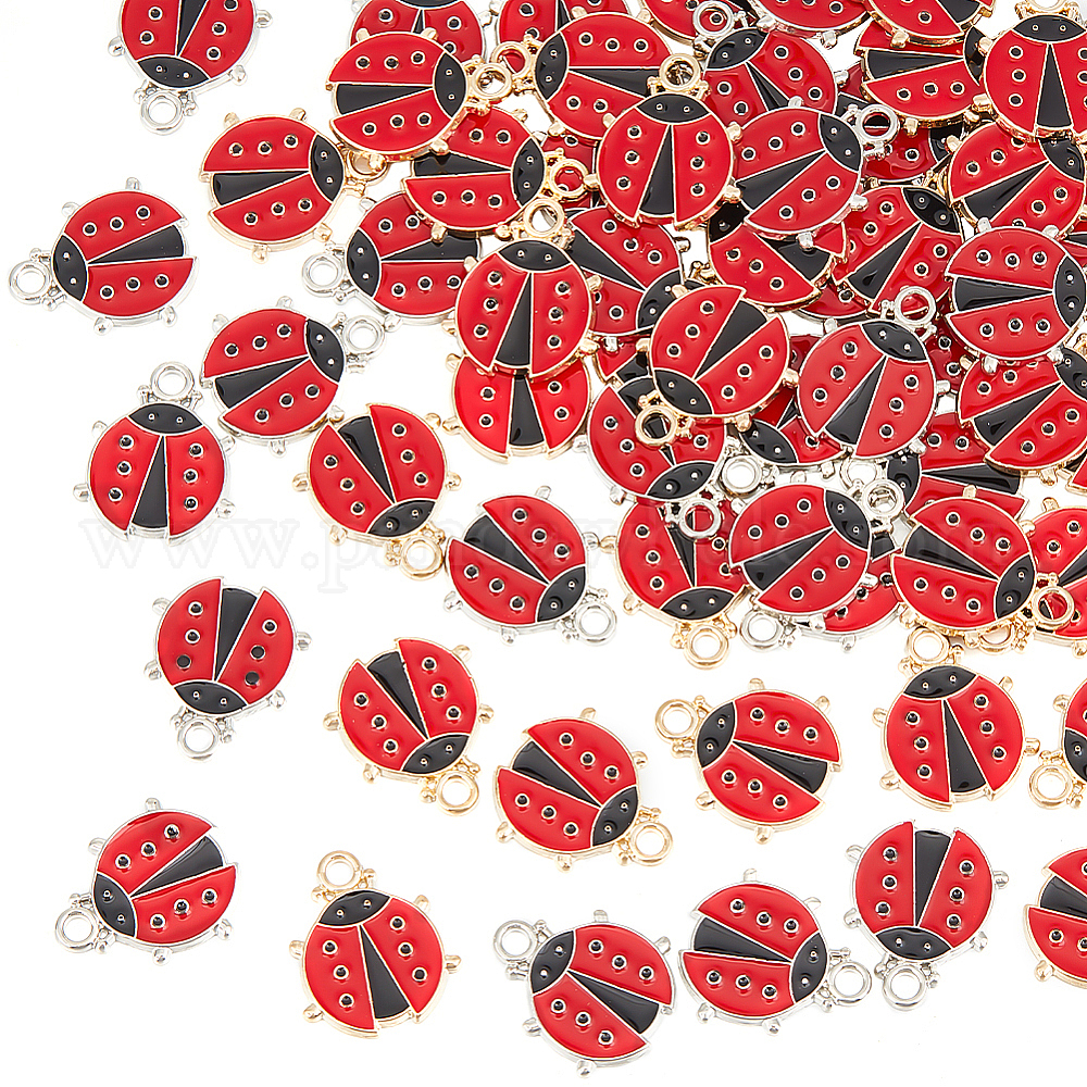 60 шт 2 цвета сплава эмалевые подвески, очарование божьей коровки