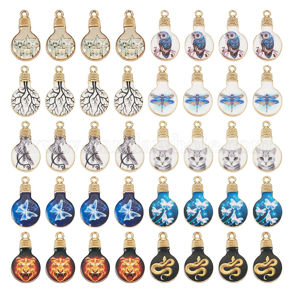 40шт 10 стили подвески из эмалированного сплава с принтом, золотой свет, очарование лампочки (02J186)