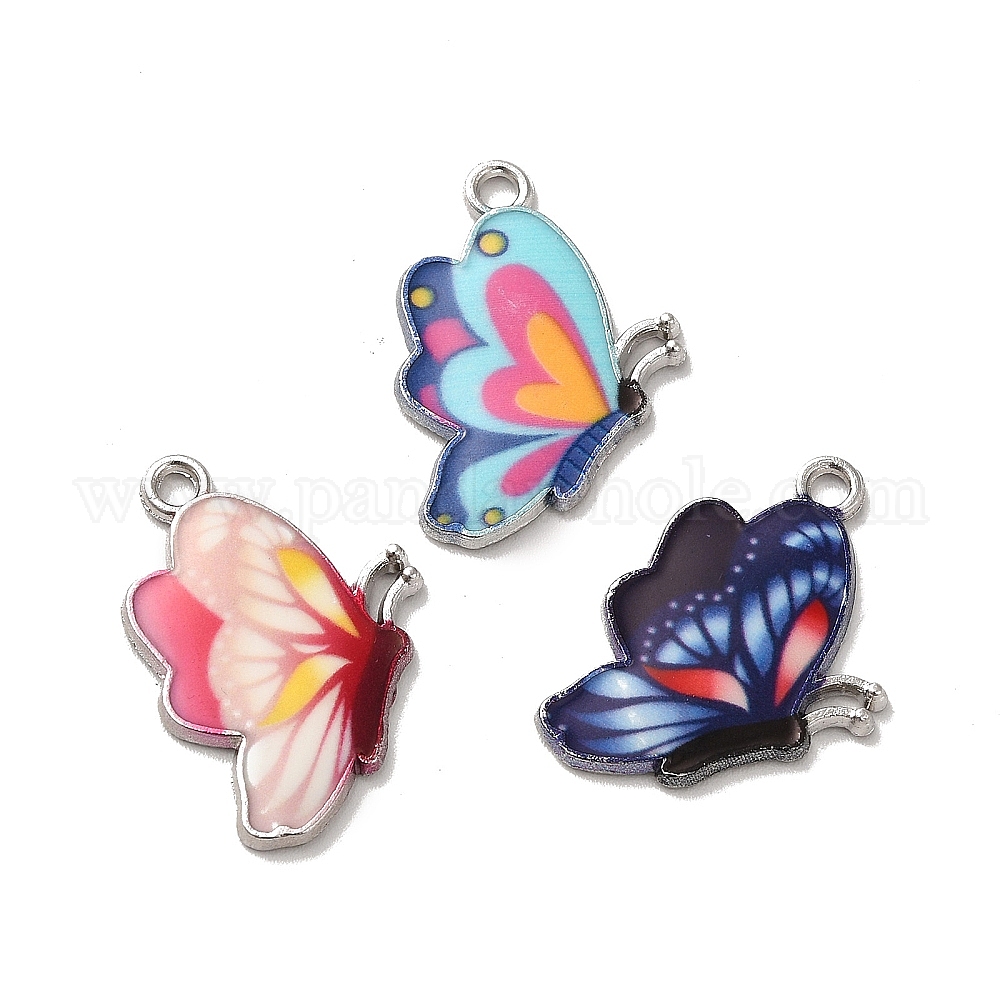Подвески из эмали и сплава, платина, очарование бабочки