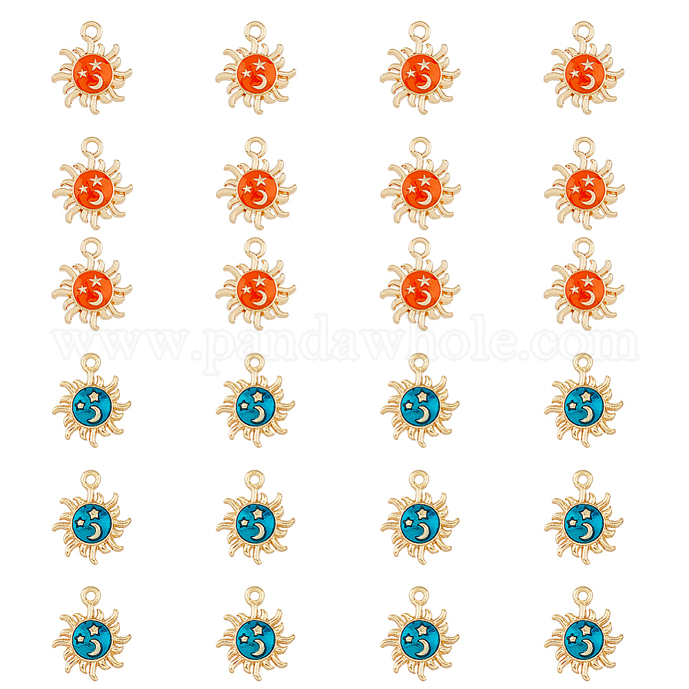 28 шт 2 цвета сплава эмалевые подвески, золотые, солнце со звездой и луной