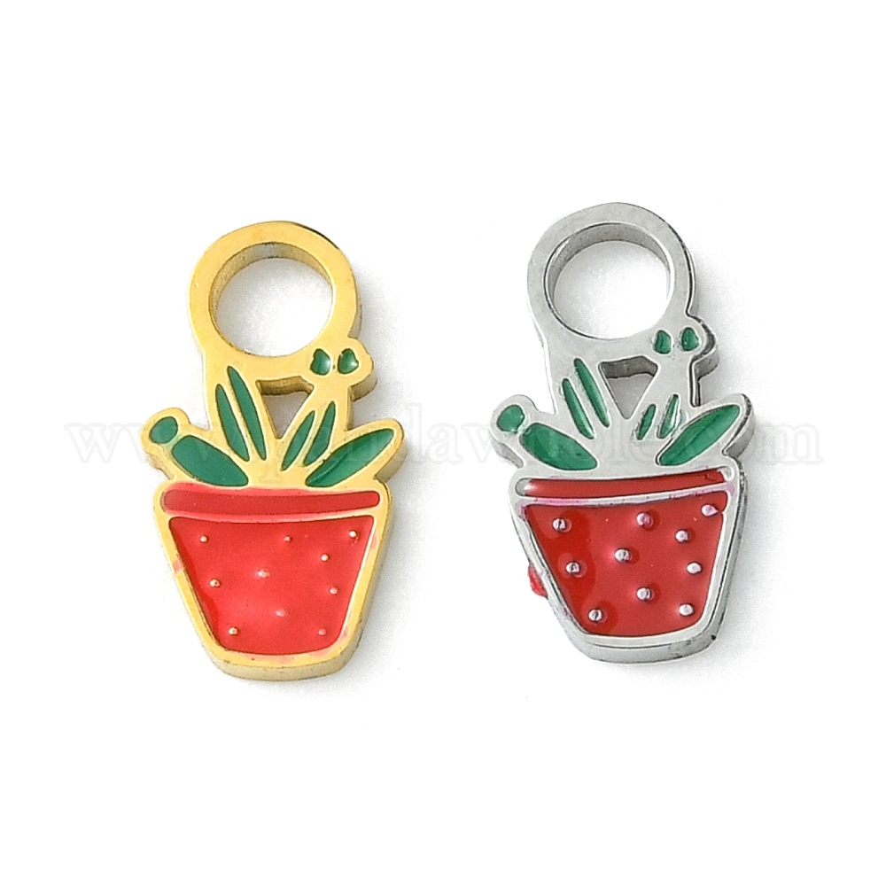 304 шармы для ручной полировки из нержавеющей стали, с эмалью, очарование растения в горшке