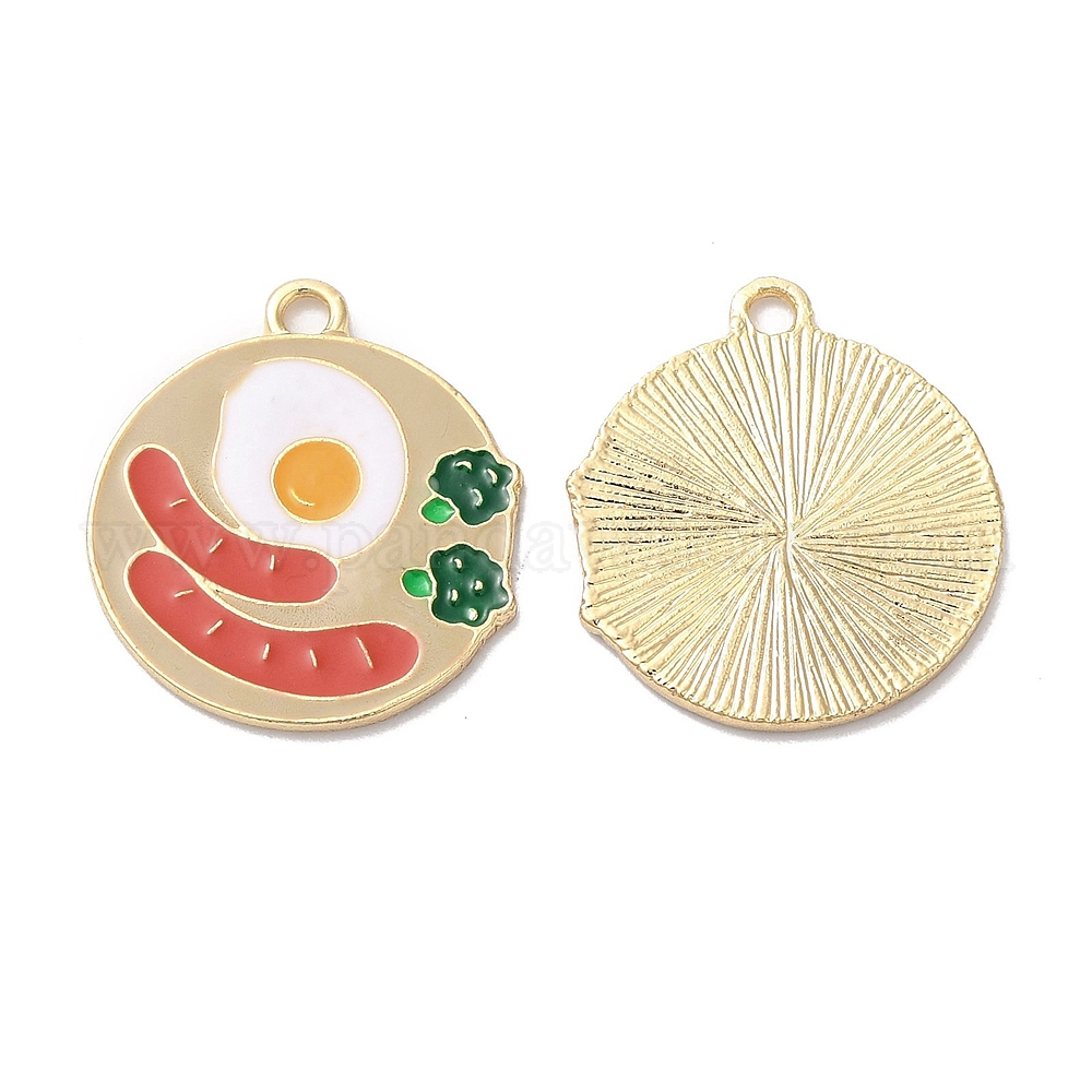 Подвески из эмали и сплава, золотые, плоская круглая с колбасой с шармом из яиц пашот (02JEJF)