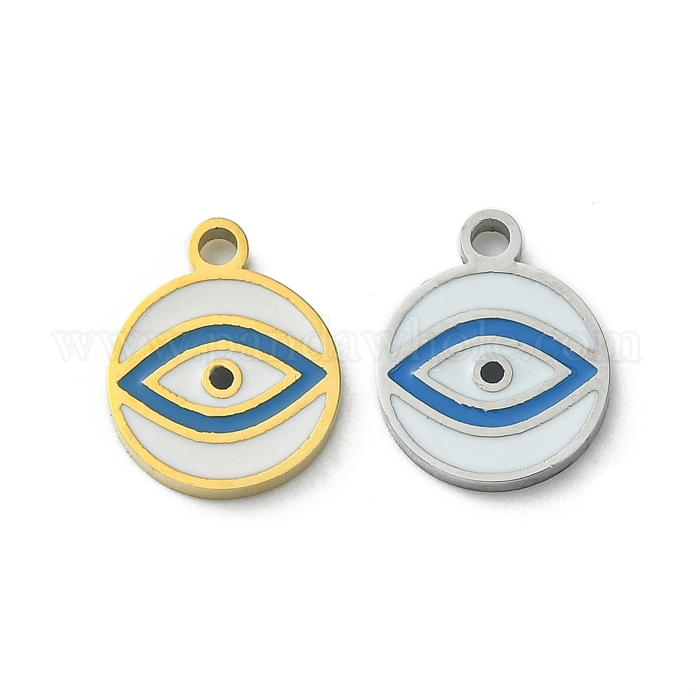 304 шармы для ручной полировки из нержавеющей стали, с эмалью, плоский круглый с шармом в виде глаз