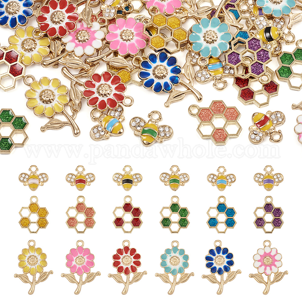 36 шт 18 стили подвески из сплава эмали, медовые соты, пчелы и цветы