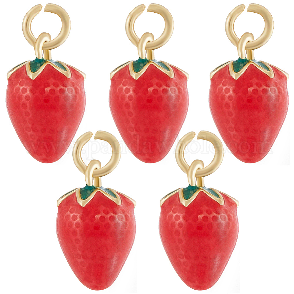 5подвески из латуни с эмалью, долговечный, с целью перехода в кольце, клубника формы, реальный 18 k позолоченный
