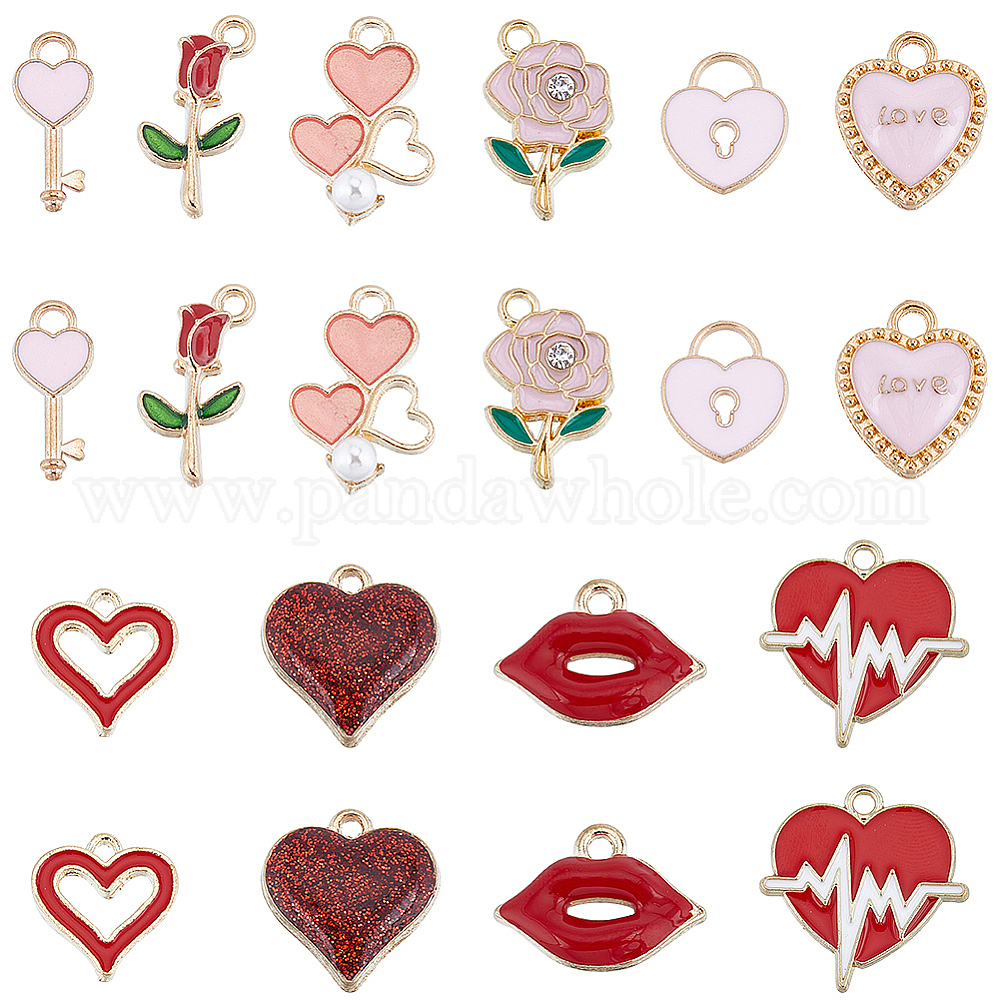 80 шт 10 стиль подвески из сплава эмали, с стразами и акриловыми шариками, роза/губа/сердце, на день Святого Валентина