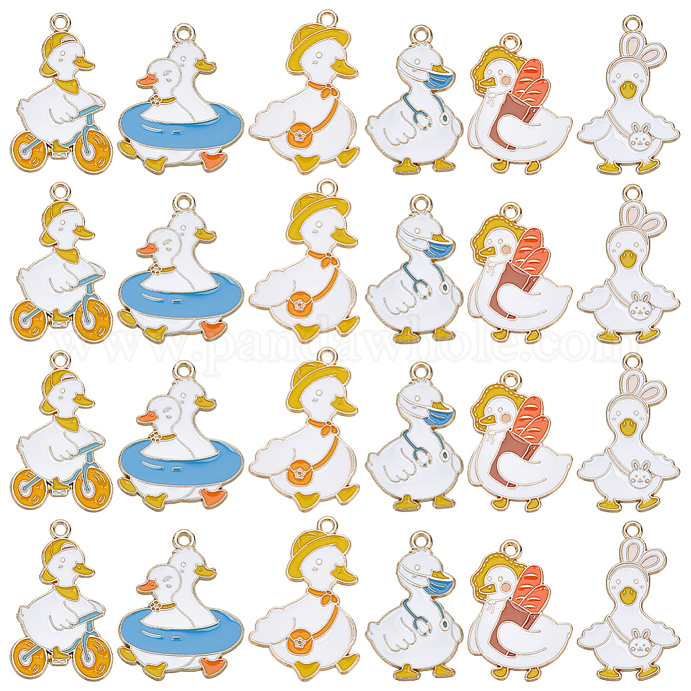 24шт 6 стили подвески из сплава эмали цвета светлого золота, утка