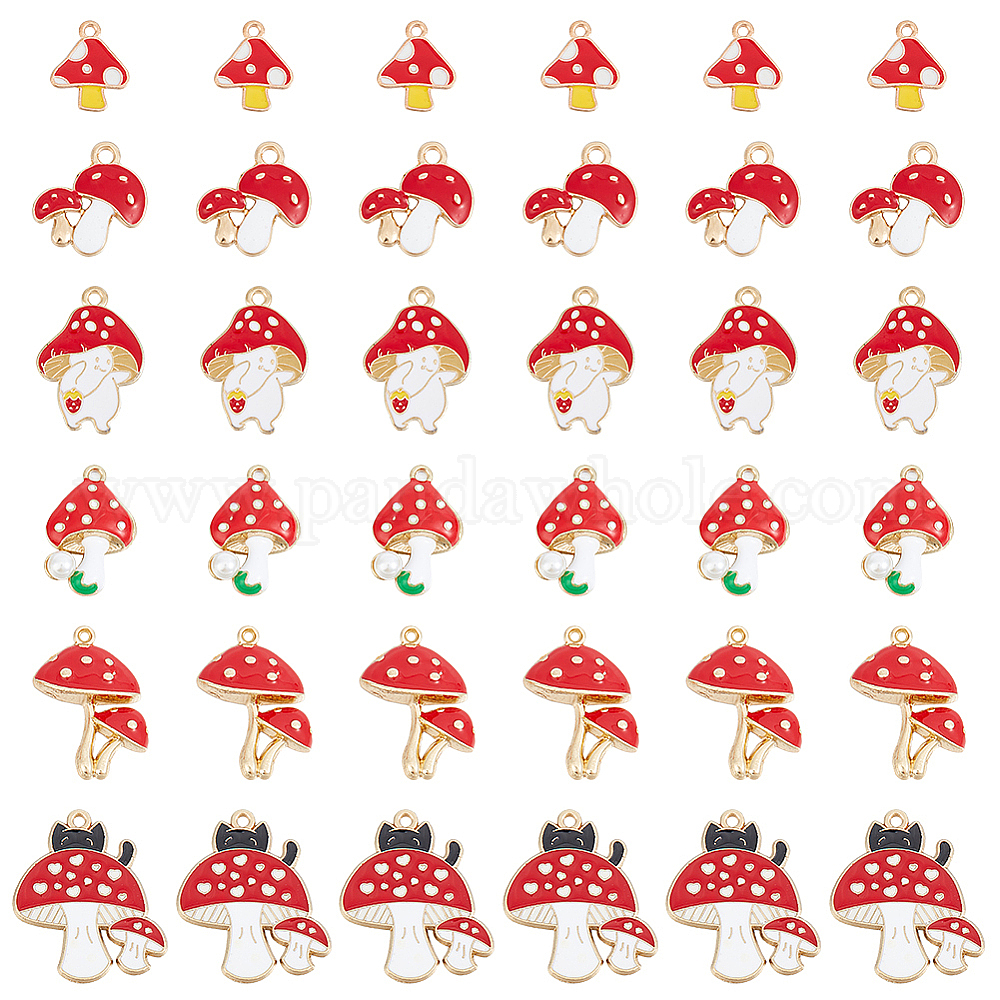 36шт 6 стили осенняя тема подвески из сплава с эмалью, гриб (02K5G5)