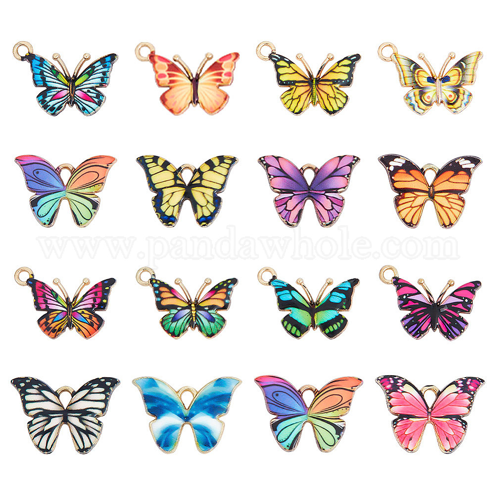 64 шт 16 стили подвески из легкого сплава с эмалью, без кадмия, без никеля и без свинца, очарование бабочки