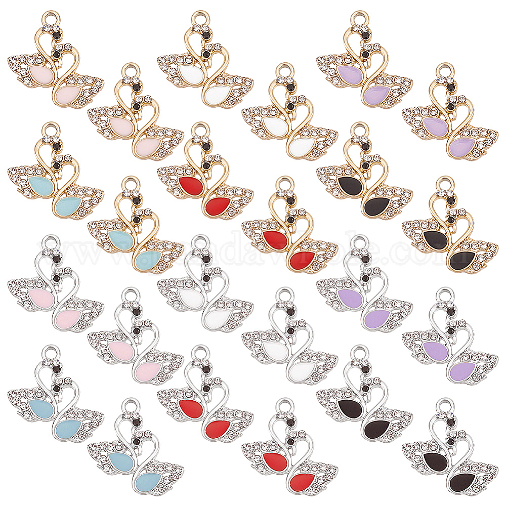 24 шт 12 стили подвески из сплава эмали, со стразами, золотой свет, пара лебедей оберег