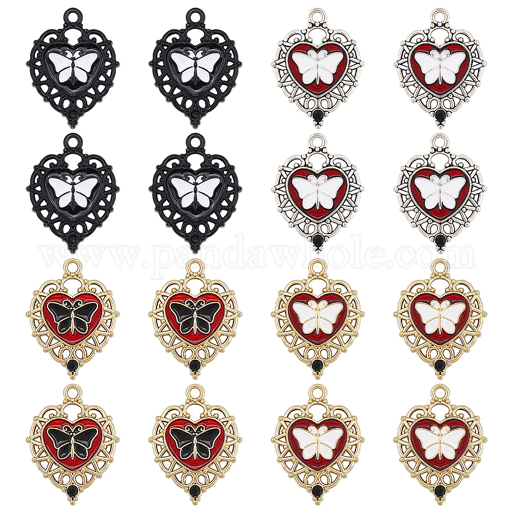 24 шт 4 стили подвески из сплава эмали, со стразами, сердце с подвеской в виде бабочки