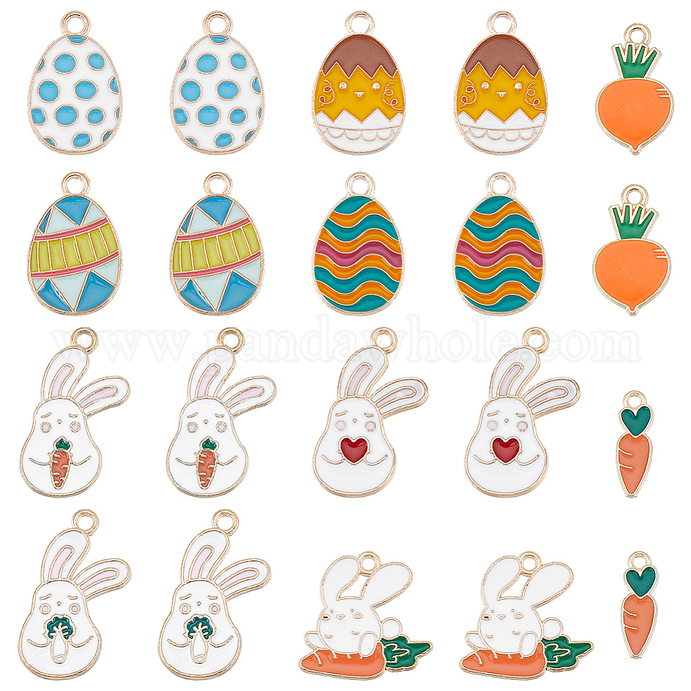40 шт 10 стиль подвески из сплава эмали, кролик/морковь/пасхальное яйцо