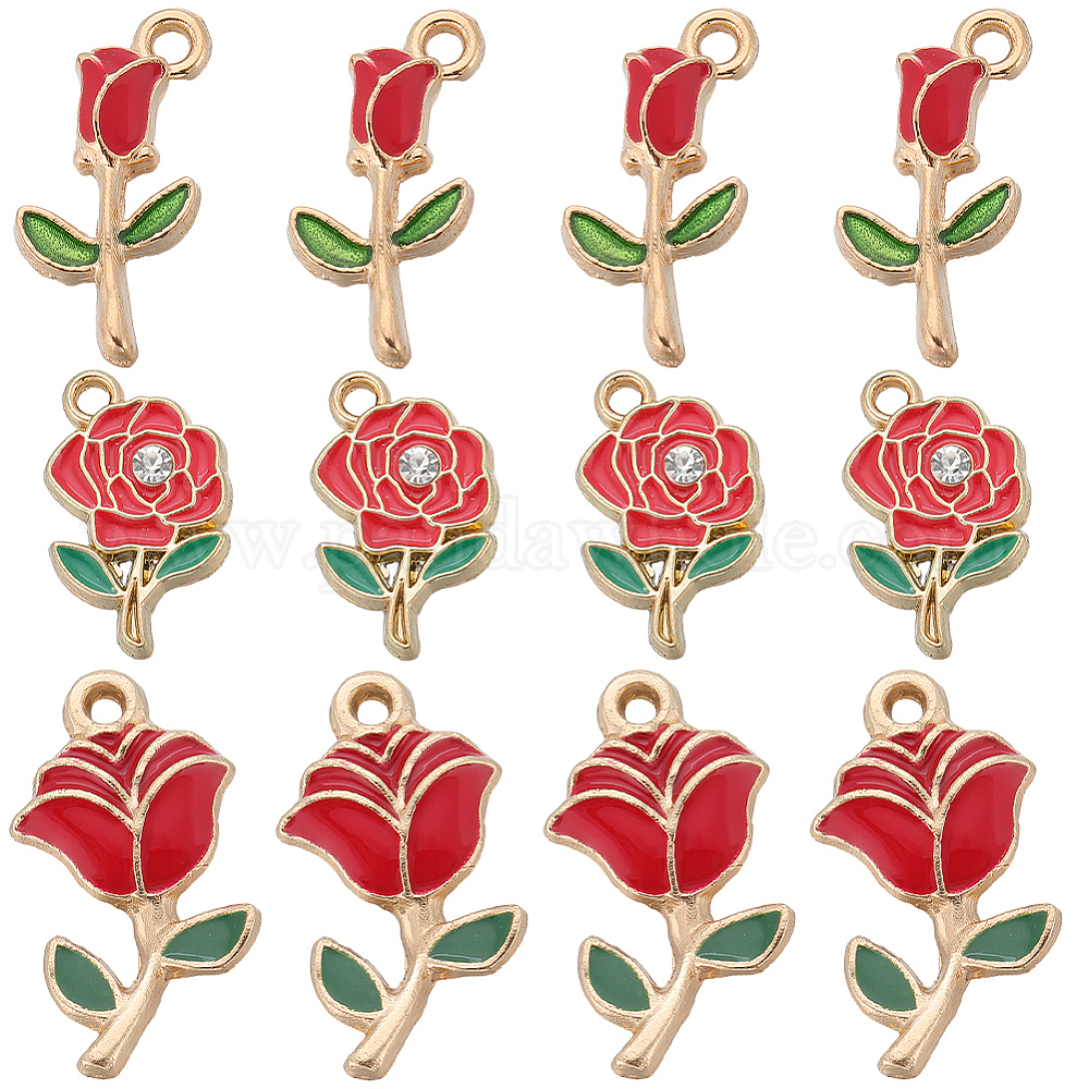 48 шт 3 стили подвески из сплава эмали, роза форма