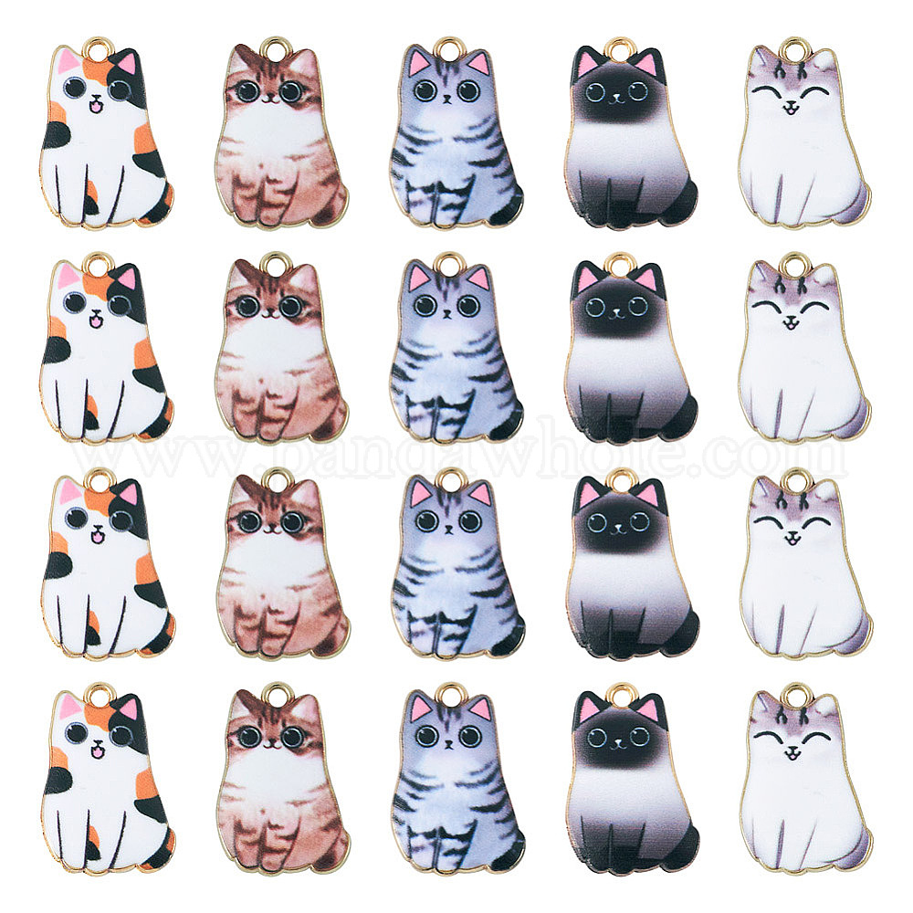 20 шт 5 цвета сплава эмалевые подвески, золотые, кошка