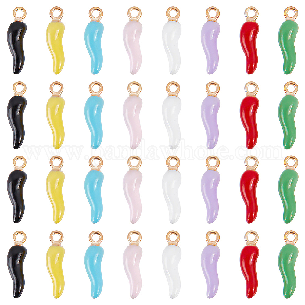 32 шт 8 цвета сплава эмалевые подвески, золотой свет, Горячий рог изобилия / прелести итальянского рога Корничелло